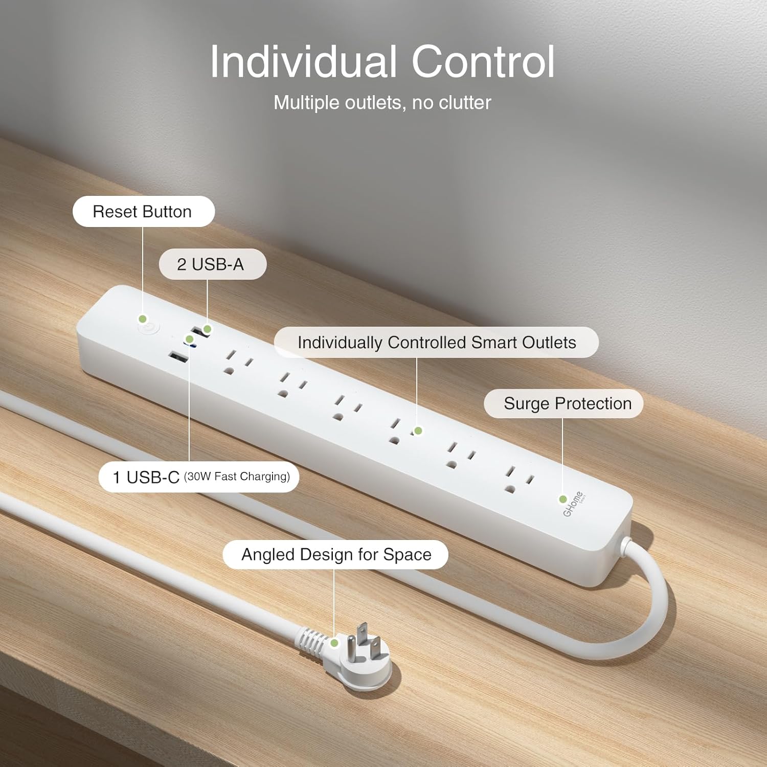 With 30W fast charging capability, you can power up your devices quickly and efficiently. The 3 USB ports ensure that your smartphones, tablets, and other gadgets are always ready to go. Plus, the 6 individually controlled outlets allow you to manage your connected devices with precision and convenience.